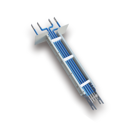 銅排使用符合國標的T2電解銅,母線槽內(nèi)導體表面加裝熱縮套管(熱縮套管選用阻燃材,絕緣等級及耐熱等級達到B級;在-5~+40℃的環(huán)境溫度下,絕緣材料能保持其柔韌性和介電強度,不易老化),起到了加強絕緣和抗老化的作用。絕緣支撐架使用電氣纖維增強不飽和聚酯塑料塊隔開一定的電氣間隙,保證電氣絕緣性能,同時,母線槽絕緣支撐架具有足夠的強度,保證了動熱穩(wěn)定性。